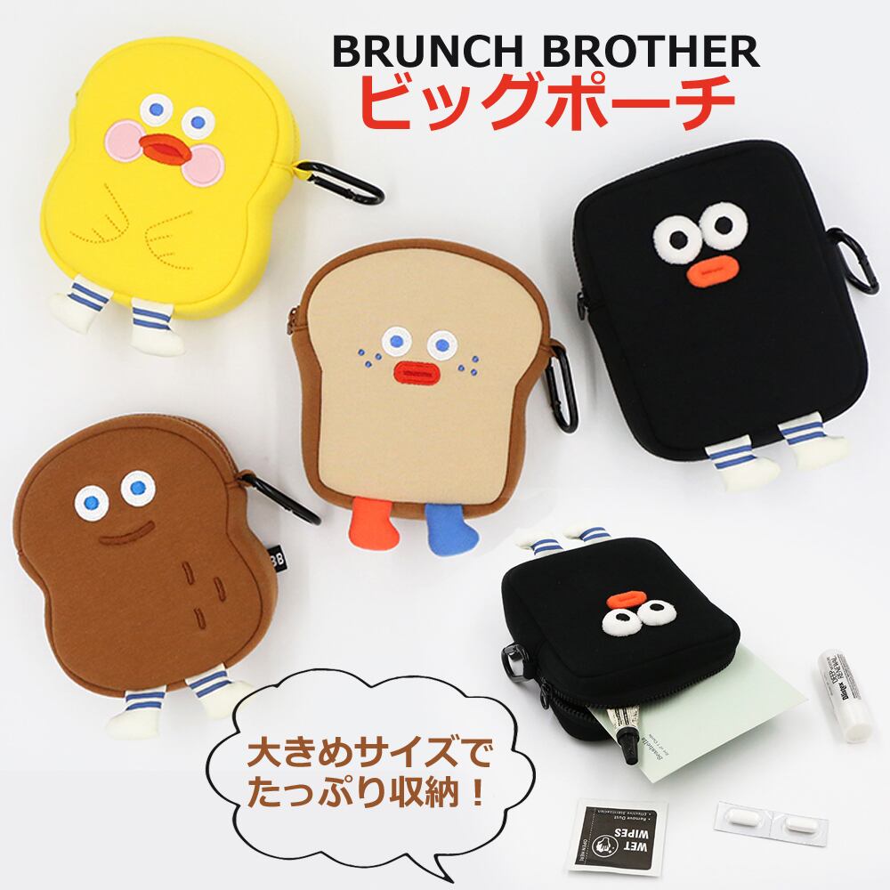 ブランチブラザー ビッグポーチ 韓国直輸入正規品 たっぷり収納 小物入れ ROMANE brunchbrother トースト ダック ピーナッツ pompom かわいい とぼけた 韓国雑貨 キャラクター ロマネ キーリング カラビナ 大きめポーチ トラベルポーチ | 韓国直輸入の雑貨屋fou fou