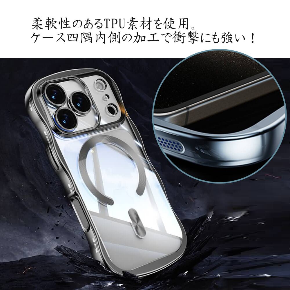 メタリックウエーブケース Magsafe対応 レンズ一体型 iPhone17 iPhone16 iPhone17Pro メタリック ウェーブ スマホケース クリアケース うねうね なみなみ くねくね 全7色 マグセーフ レンズカバー一体型 カメラカバーTPU 透明ケース 持ちやすい