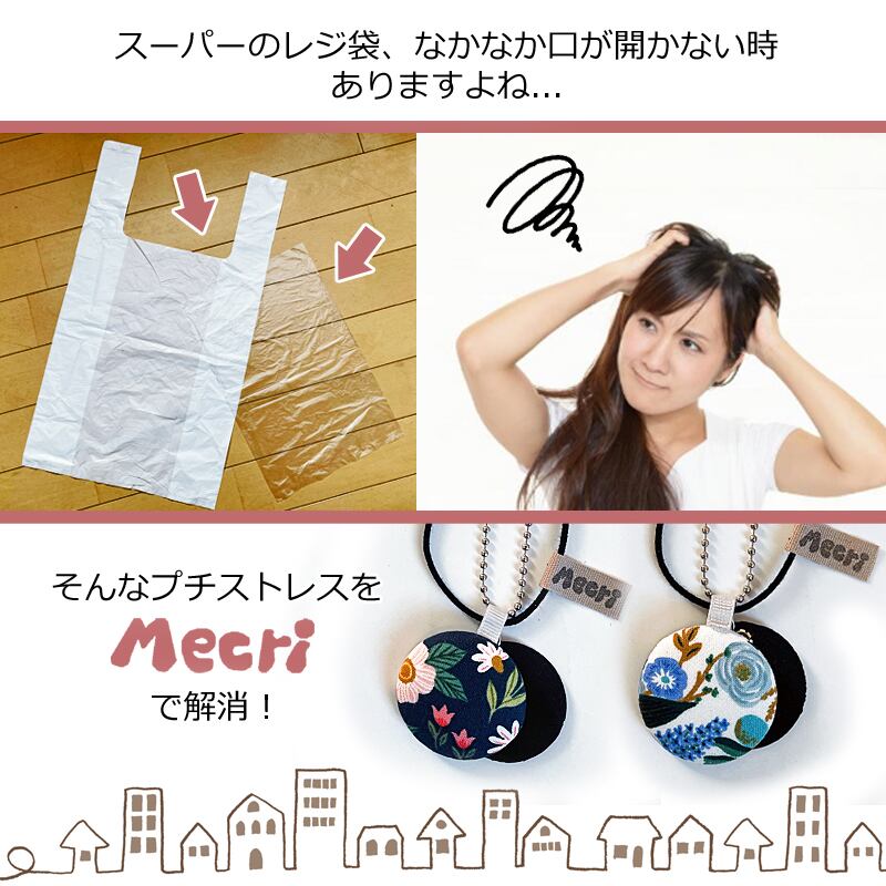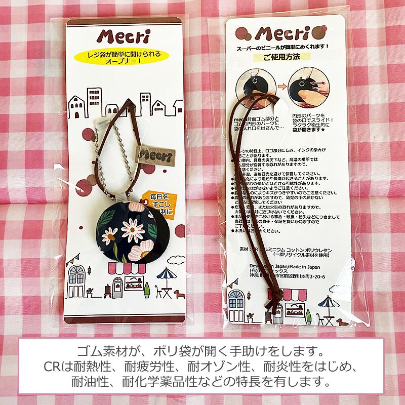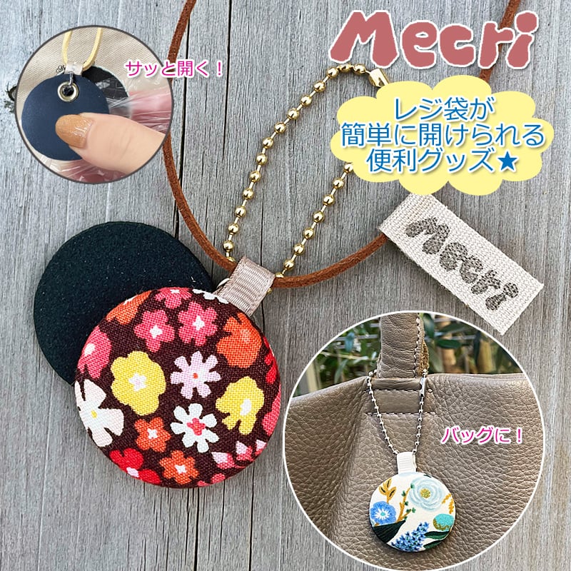 スーパーなどのレジ袋が簡単に開ける便利グッズ、「Mecri」花柄バージョンです。